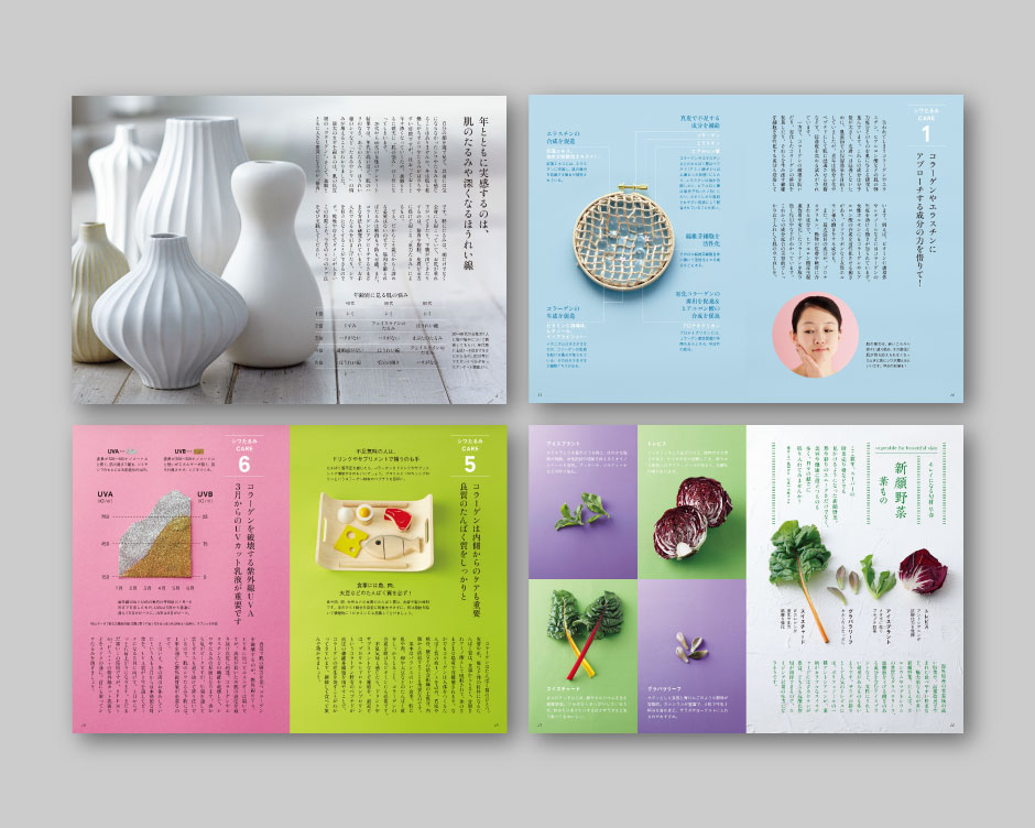 隔月号になり、誌面もさらにパワーアップ。大人女性の肌悩みNo.1のたるみ&シワを解消するための大特集。コラーゲンの喪失、筋肉のコリなどたるみの原因と、その対策についてご提案。料理の連載「キレイになる旬材」もプチリニュアル。第1弾は、「新顔野菜」のおいしいレシピです。