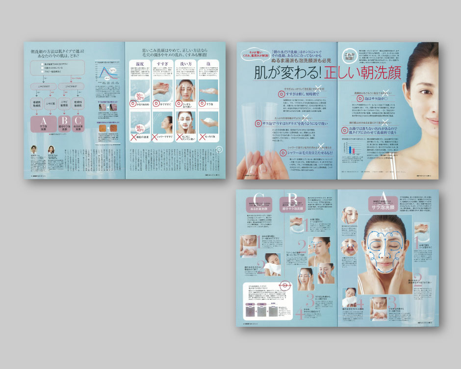 年を重ねるごとに尽きない肌の悩み…。朝の洗顔を変えるだけで、キメが整いくすみが解消。頭蓋骨マッサージでゆがみ、たるみをとり小顔に! 正しいクレンジングによる毛穴ケアや、機能性エイジングコスメの特集などアンチエイジングのスキンケアのヒントが満載です。